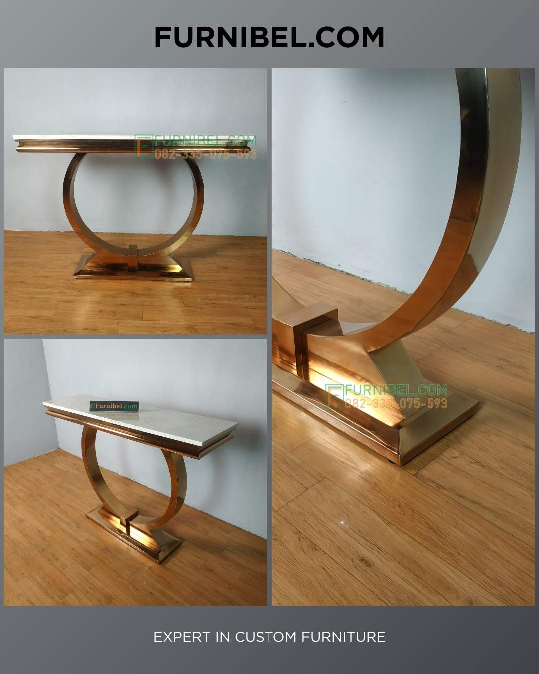 💍 Sentuhan Cincin Rose Gold yang Menawan – Ukuran 135x35x90 cmDesain lingkaran elegan dipadukan dengan top marmer cream yang lembut dan mewah.